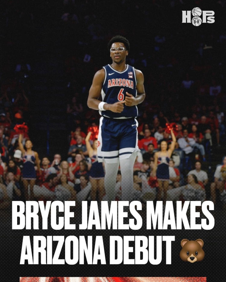 10月5日讯 今日湖人球星詹姆斯的二儿子布莱斯迎来自己在加盟亚利桑那大学的首次亮相。