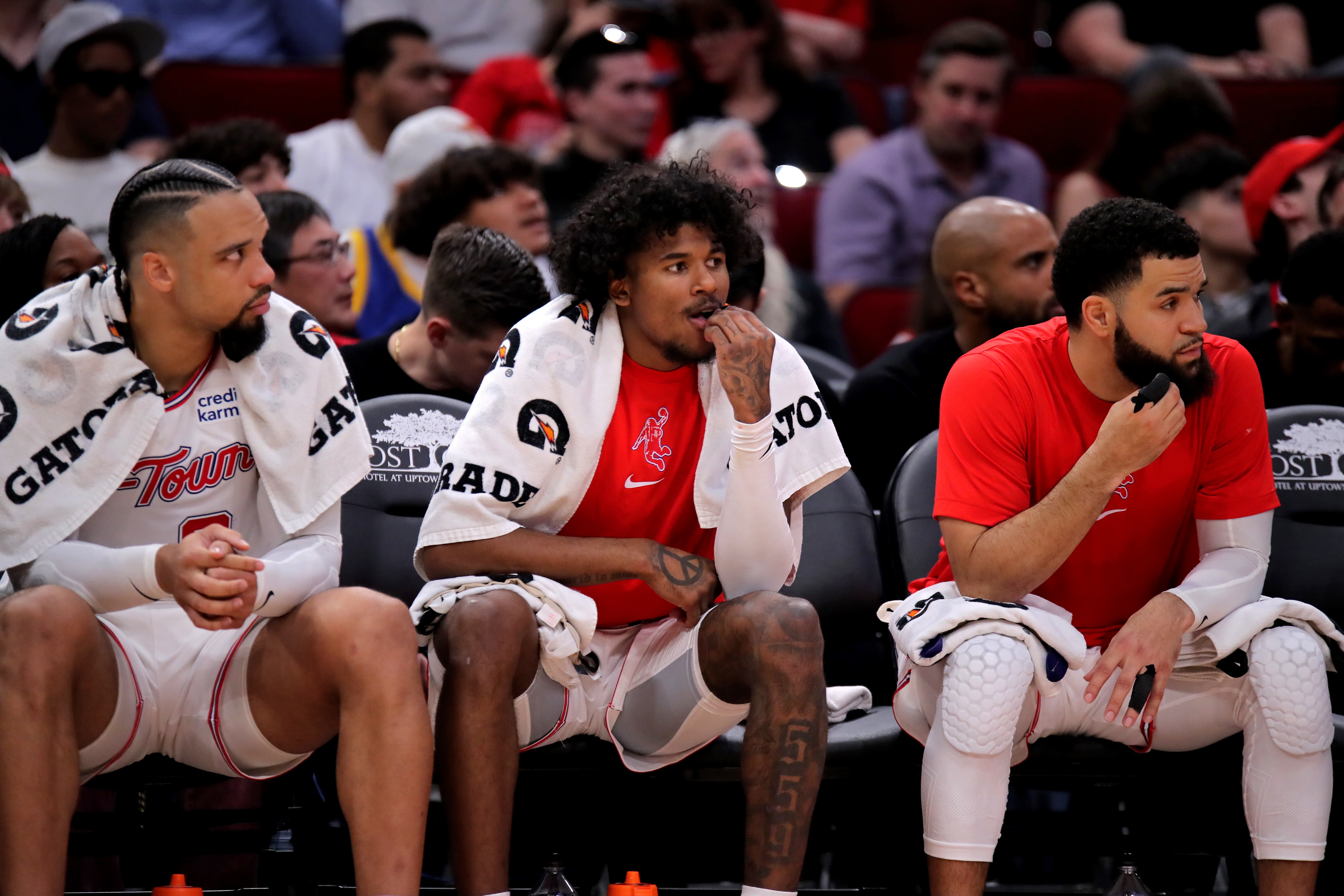 “火箭队在上赛季是二号种子,但在休赛期他们失去了三名首发球员(范乔丹、杰伦-格林和狄龙-布鲁克斯)以及他们最好的替补得分手(惠特摩尔)。球队按计划引进了杜兰特并围绕他重建阵容,看起来最终可能会重蹈覆辙。”clipfullyloaded写道。