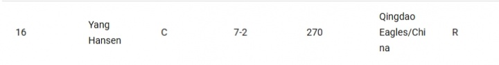 目前,杨瀚森的身高是7英尺2英寸(约2米18),体重为270磅(约122公斤,完成增重,此前是118公斤)。