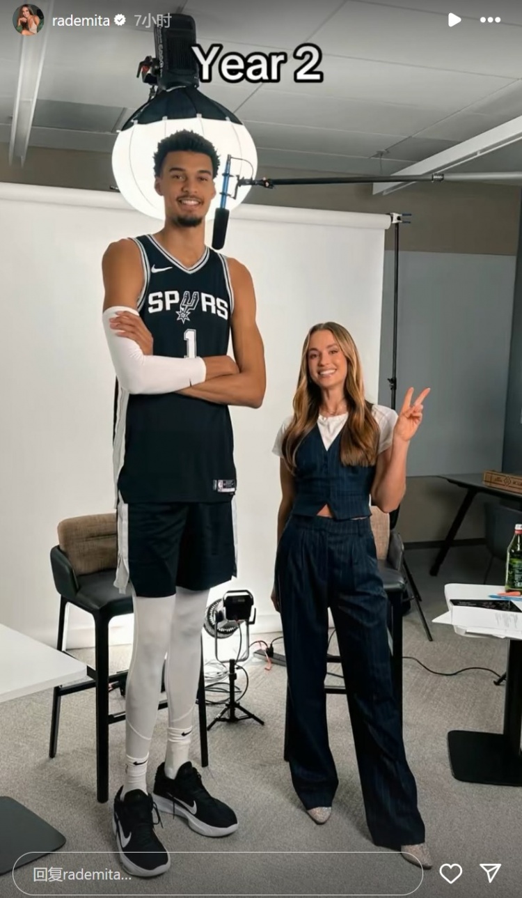 瑞秋每个赛季初都和文班亚马合影 后者从青涩→成熟