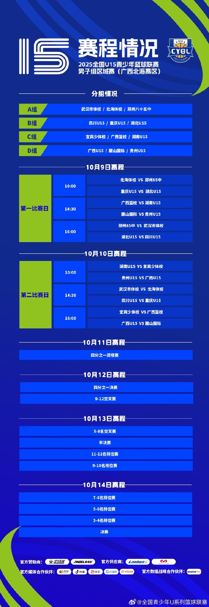 🏀2025年全国U15青少年篮球联赛男子组区域赛赛程公布!