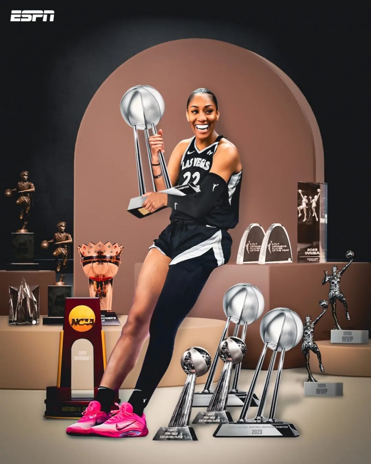 威尔逊的WNBA之路就像她的计划表一样稳步向前,蝉联总冠军、四座MVP奖杯......当她和阿德巴约的关系被发现时,圈外球迷还在用“阿德巴约的女友”来称呼她,可现在,面对近在眼前的第三座总冠军和第二次单赛季荣誉大满贯,季前赛12中1的阿德巴约显然已经不够看,威尔逊自己就是一座愈发耀眼的里程碑。
