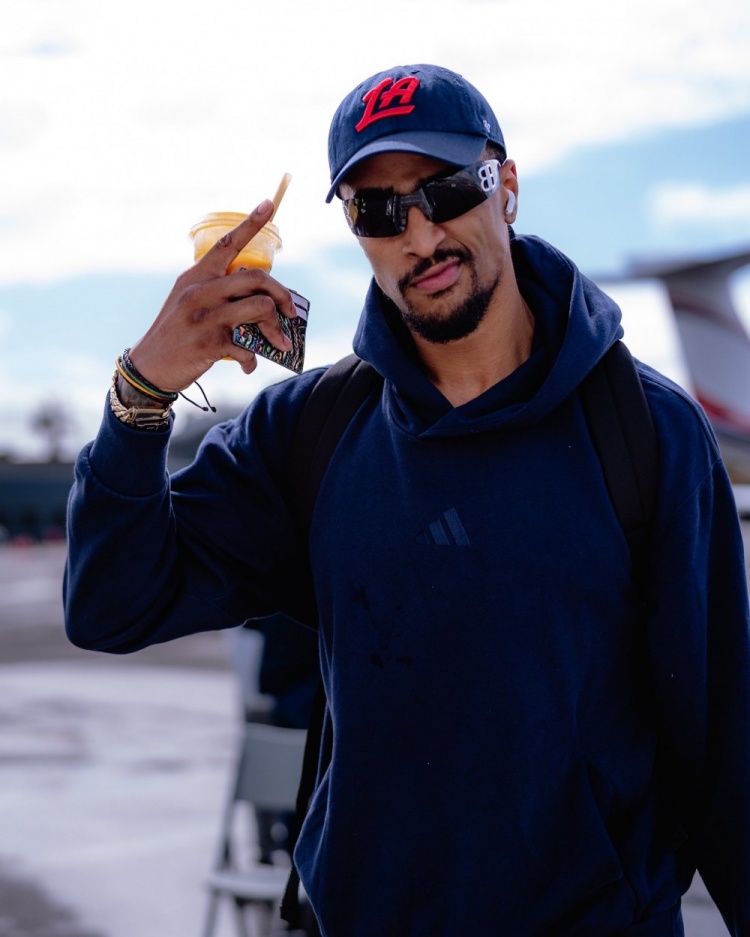 客战国王!快船晒登机照:小卡哈登穿卫衣亮相 科林斯耍酷