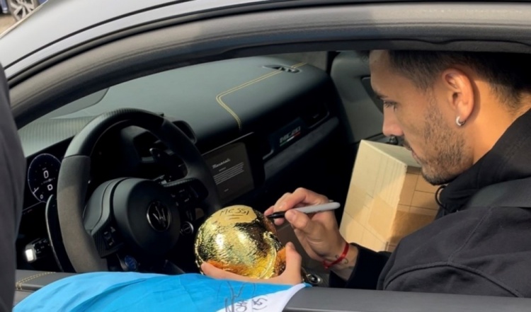 受到这些胜利的鼓舞,加布里尔决定实现自己的承诺。他得到了由艺术家埃利安娜-帕塔拉诺制作的一座精确复制的大力神杯,并开始了漫长的旅行。从欧洲到阿根廷,他一路上积累了无数珍贵的故事和签名。从马丁内斯到迪马利亚,从阿尔瓦雷斯到德保罗,再到帕雷德斯等人,他们的名字一个接一个地出现在这座奖杯上,记录下他们在卡塔尔世界杯上的辉煌时刻。然而,还差最后一个签名,梅西的签名。