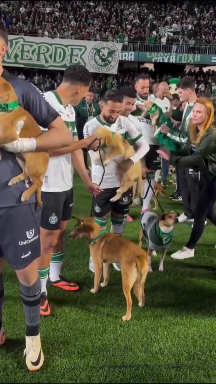 据巴西环球体育报道,为庆祝“金色九月”这一致力于动物权利的活动,科里蒂巴与当地爱心组织合作,每名球员在该组织救助的11只金色小狗的陪伴下踏上球场,这11只小狗都可供领养。