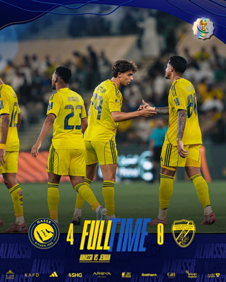 09月24日讯 沙王冠比赛,利雅得胜利4-0大胜吉达体育,菲利克斯替补出场传射建功。