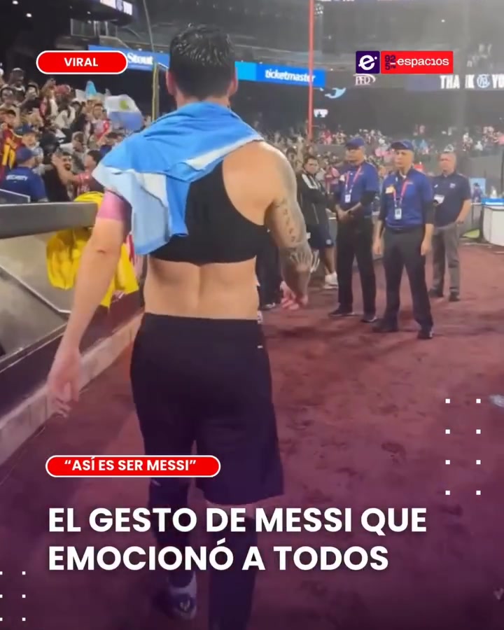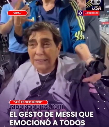 赛后美职联官推晒视频,进入球员通道前梅西给一名坐在轮椅上的老奶奶签名。