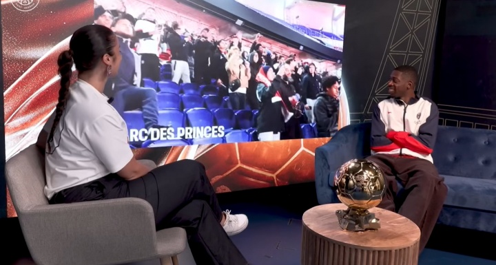 登贝莱:嗯,就像我从一开始就说的,他信任我。他对我好得难以置信,而且就像我说的,他唱那首"奥斯曼金球奖"已经唱了三个月了,每次见到我都唱,所以这很让人开心。他从一开始就给予我的所有信任,我努力在球场上回报。