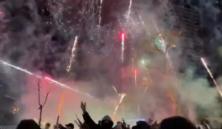 凌晨3点搞事😨太阳报:加拉塔萨雷球迷在利物浦下榻酒店外放烟花