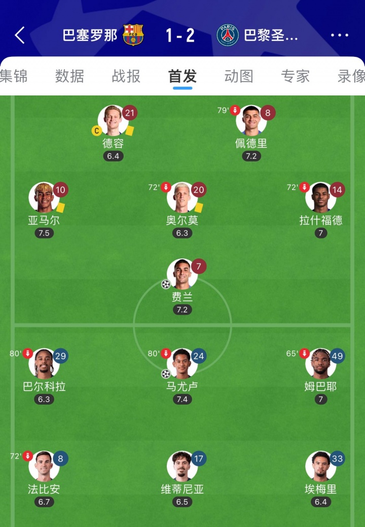 三人总身价合计8800万欧,不及亚马尔(2亿欧)的一半。身价最低的姆巴耶年仅17岁,在比赛中生吃孔德。