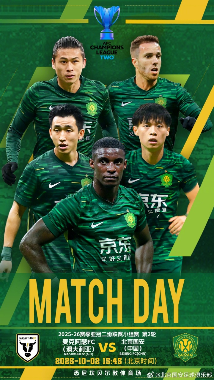10月02日讯 25/26赛季亚冠二级联赛小组赛第2轮,北京国安客战澳超球队麦克阿瑟FC,赛前阵容公布,国安首发进行了轮换。