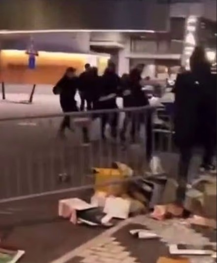 推特上流传的视频显示,身着黑衣的人群冲进某个区域,背景中可见玻璃杯被砸碎。另一段视频中,发布者称:“我和儿子当时正在找酒吧,走到这家酒吧时感觉气氛紧张就没进去,随后就爆发了冲突,这是我儿子拍摄的视频。”
