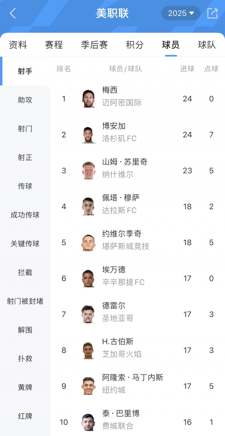 追平梅西!洛杉矶FC前锋博安加攻入第24球,MLS射手榜并列第一