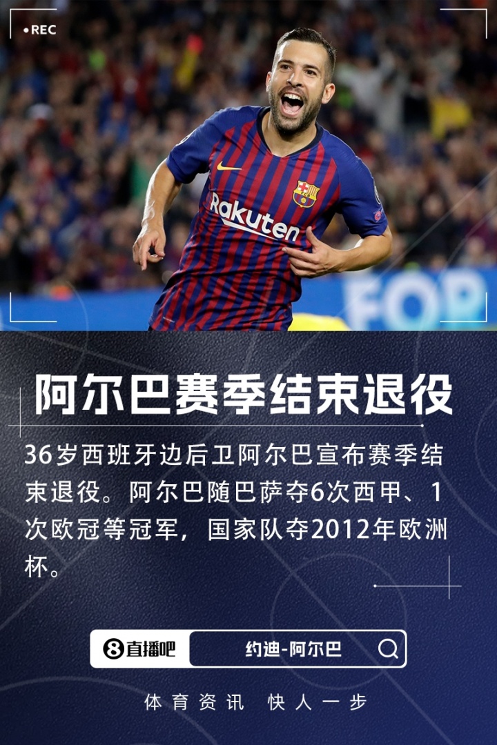 36岁迈阿密国际边后卫阿尔巴在社媒自宣,将在迈阿密国际的赛季结束后退役。