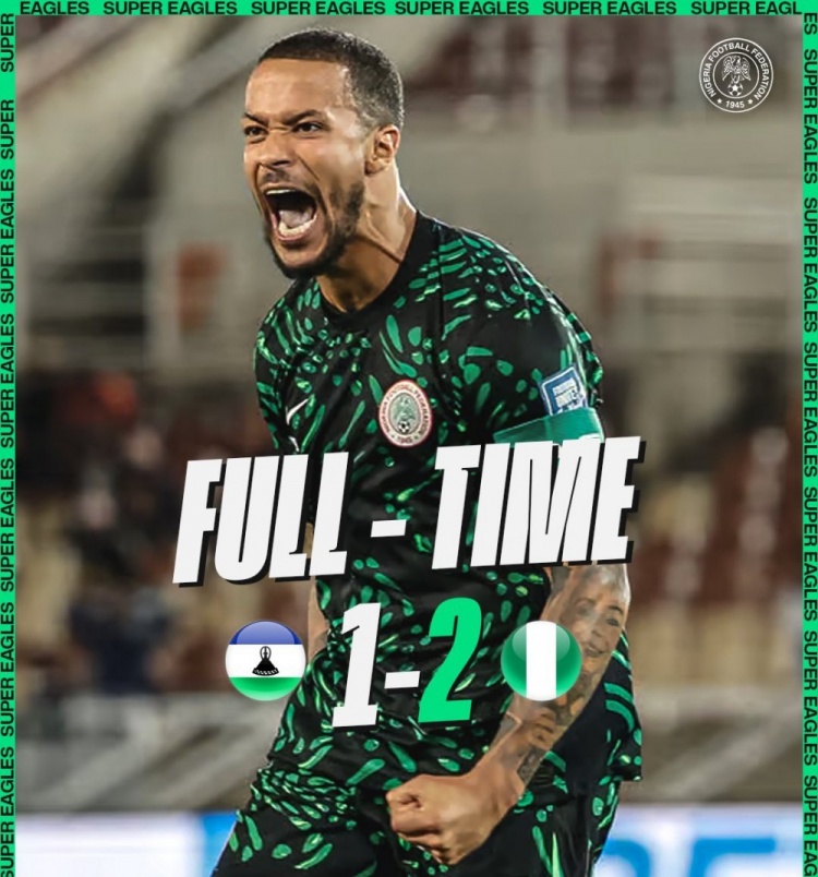 莱索托在第83分钟由赫洛弗-卡拉克打进1球,最终尼日利亚2-1击败莱索托。