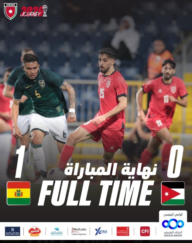 玻利维亚队和约旦队进行一场友谊赛的较量,比赛第90分钟,罗布森-马特乌斯远射绝杀,帮助玻利维亚队1-0击败约旦队。